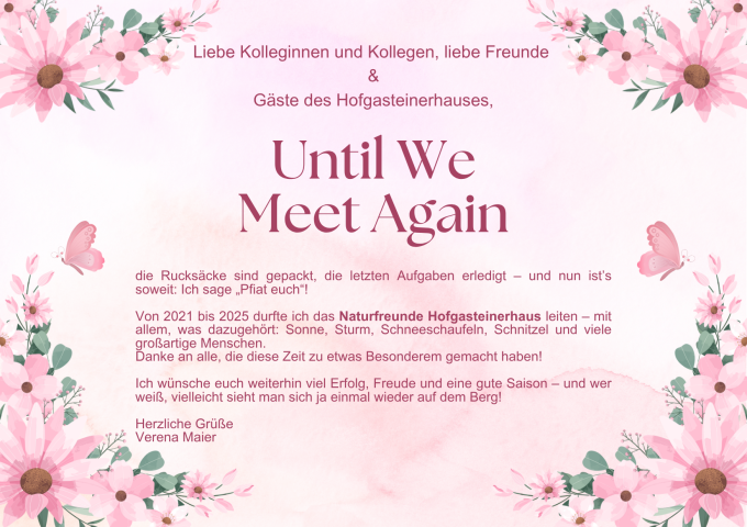 Mitgebrachte Speisen und Getränke dürfen weder auf der Terrasse noch im Gastraum verzehrt werden. Müll, der auf den Zimmern durch mitgebrachte Speisen entsteht, ist wieder ins Tal mitzunehmen, ansonsten wird eine Reinigungsgebühr verrechnet.